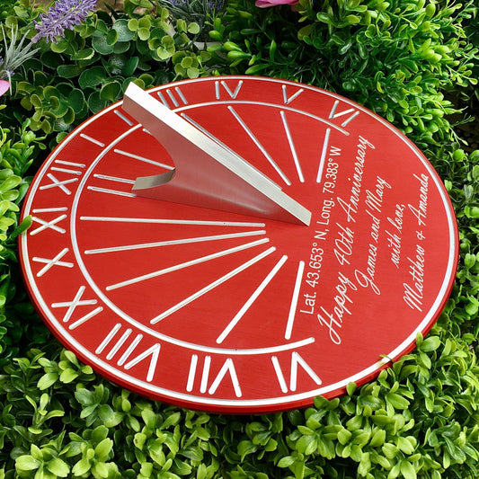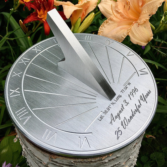 Made of aircraft aluminum and stainless steel, our sundials are built to last, leaving your loved one in awe. Each garden sundial is coated with a UV resistant lacquer, protecting it from the sun's rays, water and snow. Excellent for outdoor use year round.