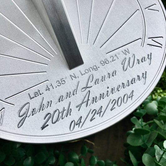 Show them how much they mean to you! Have a custom message deep engraved directly on your sundial. Message length varies by sundial size (6 in: 20 char, 8 in: 40 char., 12/16 in: 60 char).